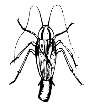 This relatively small cockroach is probably the most widespread species. It is the most prolific breeder of all the cockroaches, taking as little as 40 days to develop from hatching to adulthood. Adults are light amber-brown with two dark longitudinal stripes on the pronotum. Egg Cases (Ootheca) are carried by the female until just before hatching, and contain 30-40 eggs. This cockroach seeks warm moist conditions. It is usually found under sinks, in cupboards, under drawers, around water heaters and appliances like fridge’s, microwaves, and dishwashers. Although it is winged it does not seem to fly preferring to travel by being carried